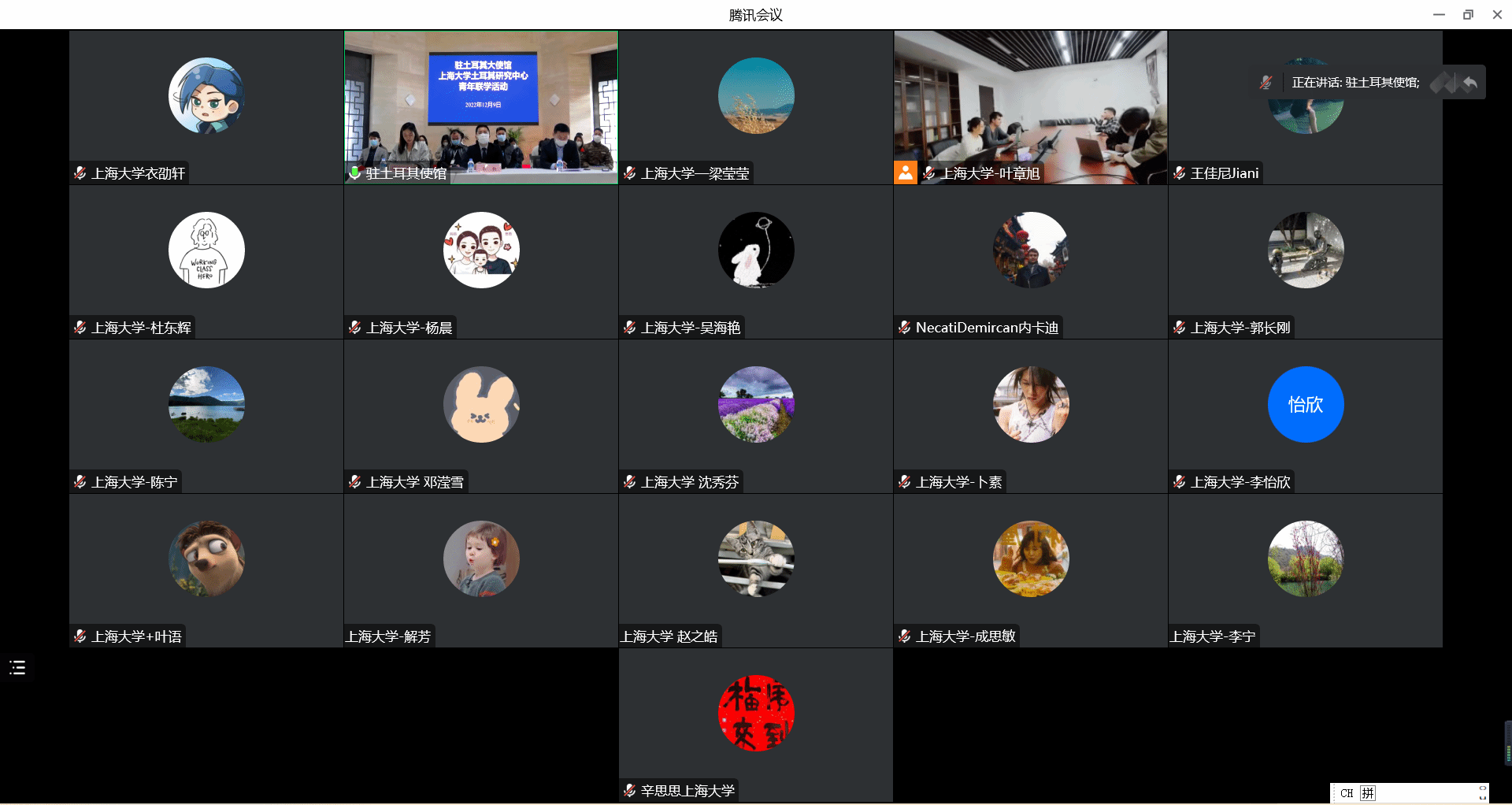 2022年12月9日,我中心与中国驻土耳其大使馆共同举办“学习宣传贯彻二十大精神,为中土关系发展建言献策”的青年联学活动。本次联学活动以线上线下相结合的方式举行,线下会场设在土耳其安卡拉的中国大使馆,来自大使馆、土耳其研究中心的三十余名青年代表参与了本次联学活动。