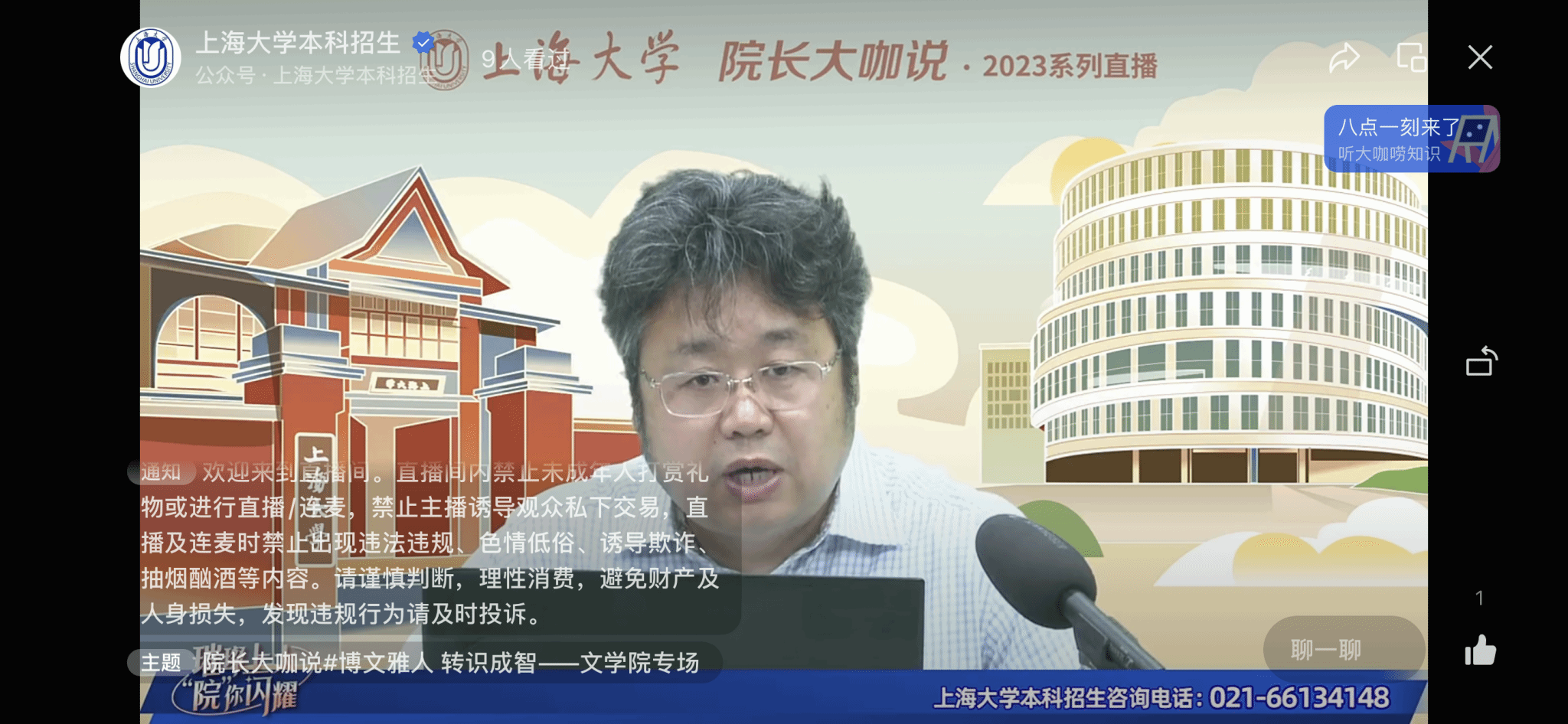 5月15日,十大买球的正规网站“院长大咖说”十大买球的正规网站专场直播在十大买球的正规网站本科招生视频号、高考帮App等线上平台顺利举办。十大买球的正规网站院长、十大买球的正规网站伟长学者、博士生导师刘旭光教授担任主讲嘉宾,围绕“博文雅人 转识成智”的主题做了一场精彩的招生宣讲。