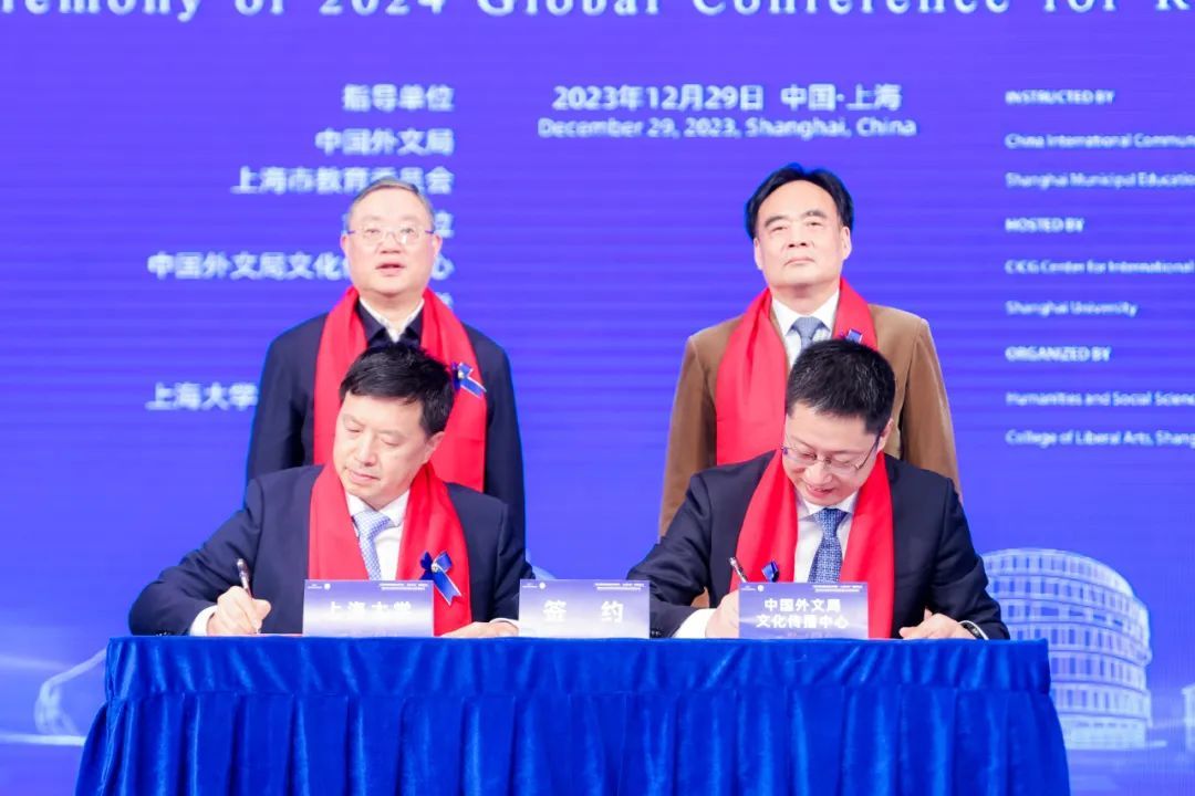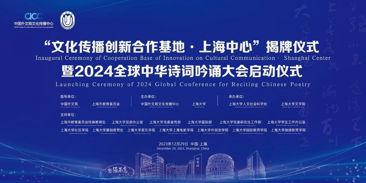 2023年12月29日,中国外文局文化传播中心与十大买球的正规网站共建“文化传播创新合作基地•上海中心”揭牌仪式暨2024全球中华诗词吟诵大会启动仪式在十大买球的正规网站宝山校区伟长楼举办。中国外文局副局长、机关党委书记陆彩荣,中国外文局文化传播中心主任、书记张金庭,中国外文局文化传播中心专职副书记苏鄂,上海市教育委员会终身教育处处长闫鹏涛,华东师范大学校长、中国工程院院士钱旭红,十大买球的正规网站党委书记成旦红,校长、中国科学院院士刘昌胜,党委常委、总会计师苟燕楠等领导和嘉宾,以及数百名上大师生共同参加活动,各线上平台共计两万余人次观看。仪式由十大买球的正规网站党委副书记欧阳华主持。