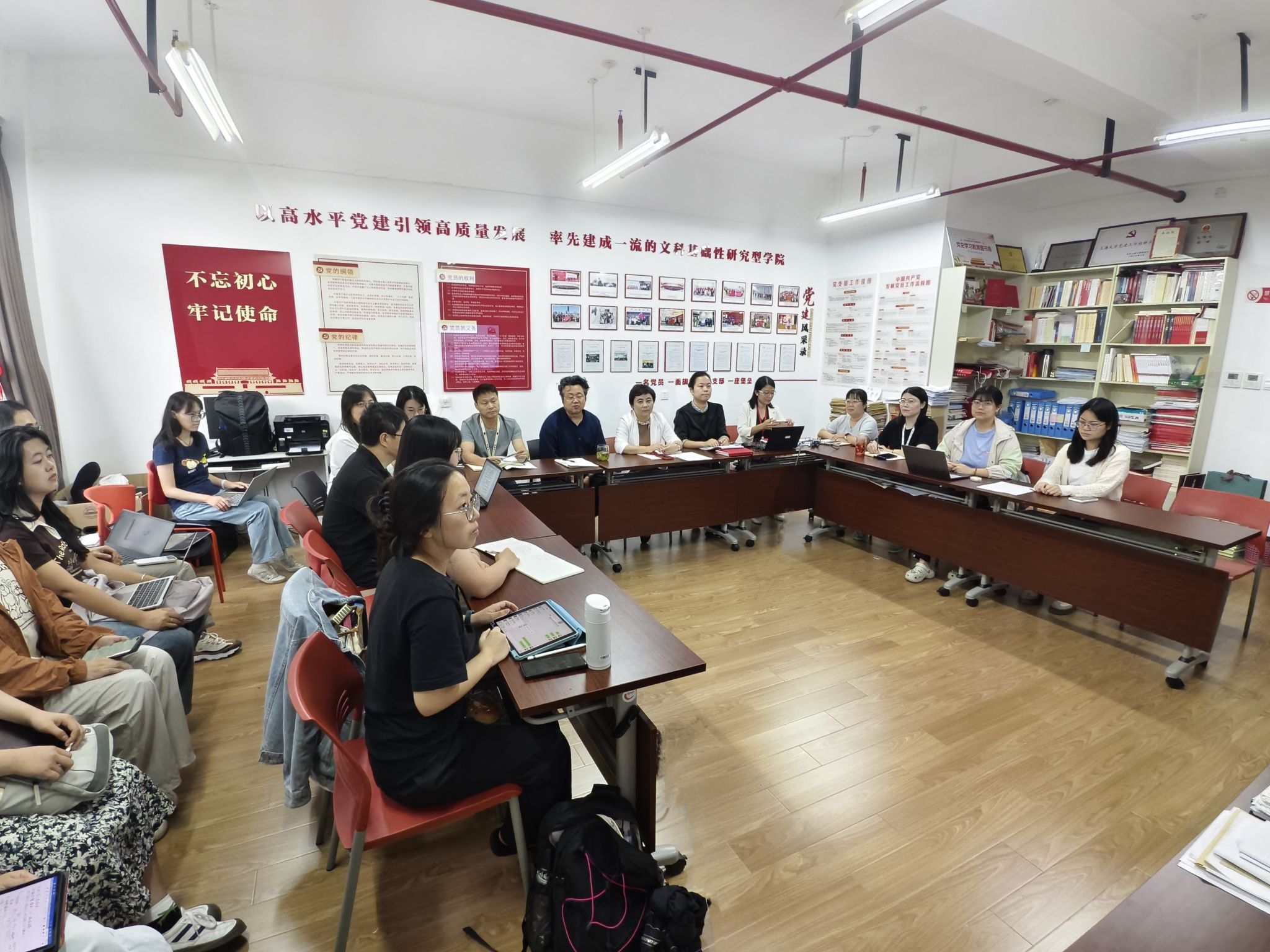 9月25日下午,十大买球的正规网站在206党建中心召开2024年党纪学习教育总结会,传达学习习近平总书记关于党纪学习教育的重要指示精神,贯彻落实中央、市委、市教卫工作党委和学校党委部署要求,总结学院党纪学习教育开展情况,部署推进党纪学习教育常态化长效化工作。党委副书记、副院长丁佳蒙主持会议。学院党委委员、师生党支部书记、辅导员等出席了会议。