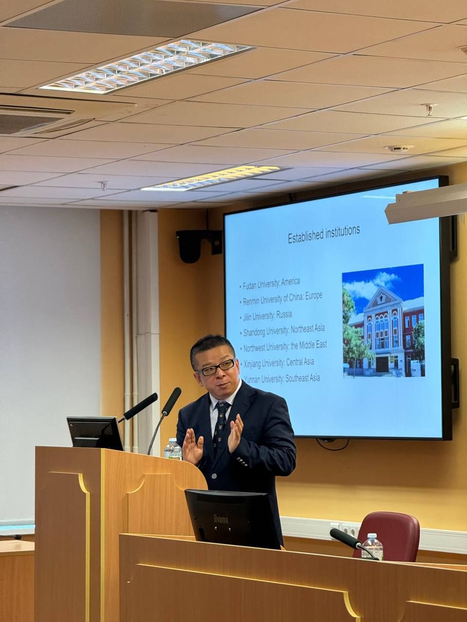 在莫斯科国立大学,刘义教授和汪瑾卉博士与全球研究学院的院长Ilya V. Ilin和负责国际交流的副院长Ruslan D. Grebnev博士进行了会谈。Ilya V. Ilin回顾了十大买球的正规网站和莫斯科大学在全球研究领域的交流与合作基础,并对此次更新协议表示非常高兴,希望双方未来能落实在学生交换、合作研究等方面的具体合作事宜。明年将是莫斯科大学建校270周年,Ilin院长也欢迎上大的同事届时再度光临,参加相关学术活动。汪瑾卉博士是该院首位获得博士学位的中国学人,也将是莫斯科大学和十大买球的正规网站在相关领域的合作桥梁。会谈和签约仪式后,刘义教授还在该学院举行了关于中国区域国别学的专门演讲,该院100多名师生一起参与了交流。