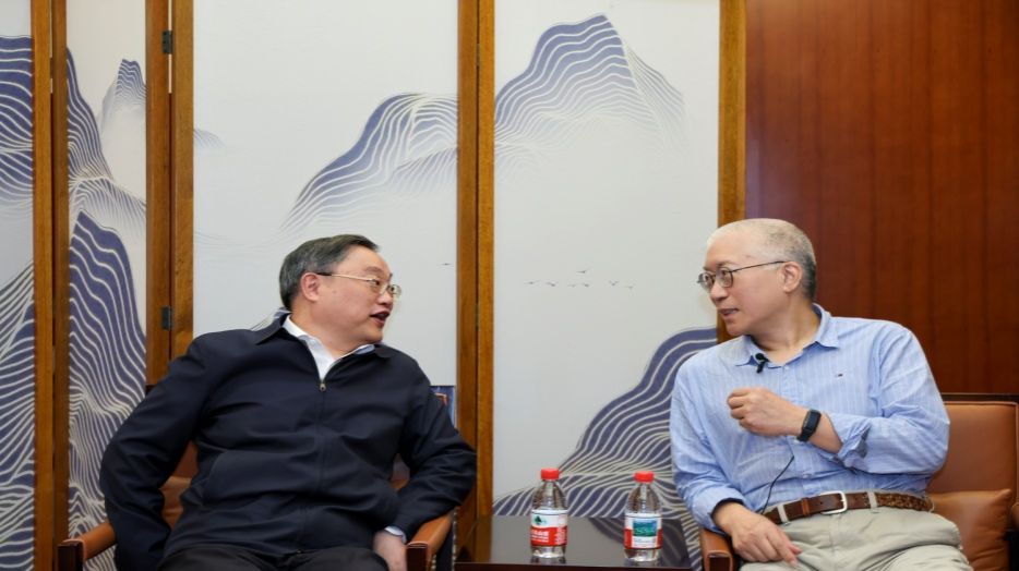 图2 成旦红书记与王晓明教授会前亲切交谈