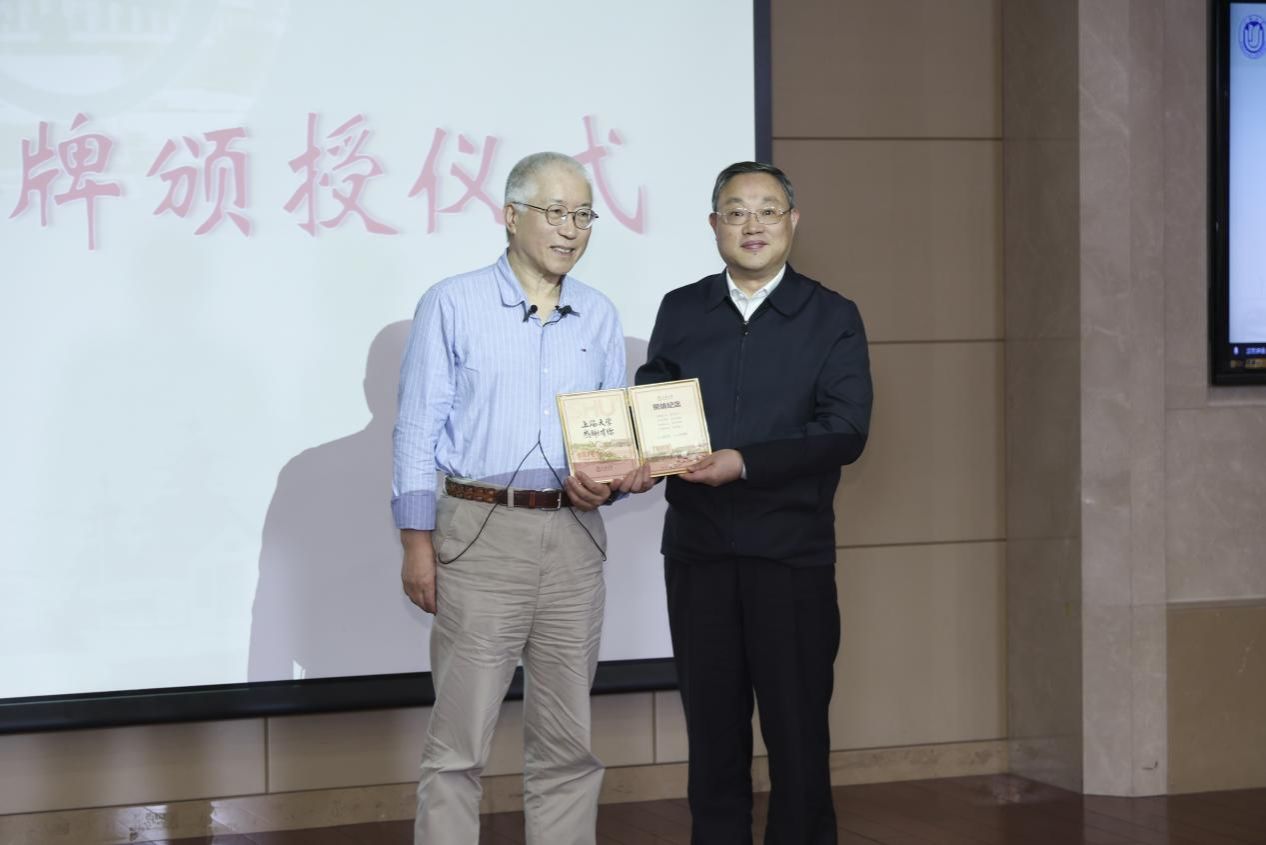 图10 成旦红书记为王晓明教授颁授荣休纪念牌