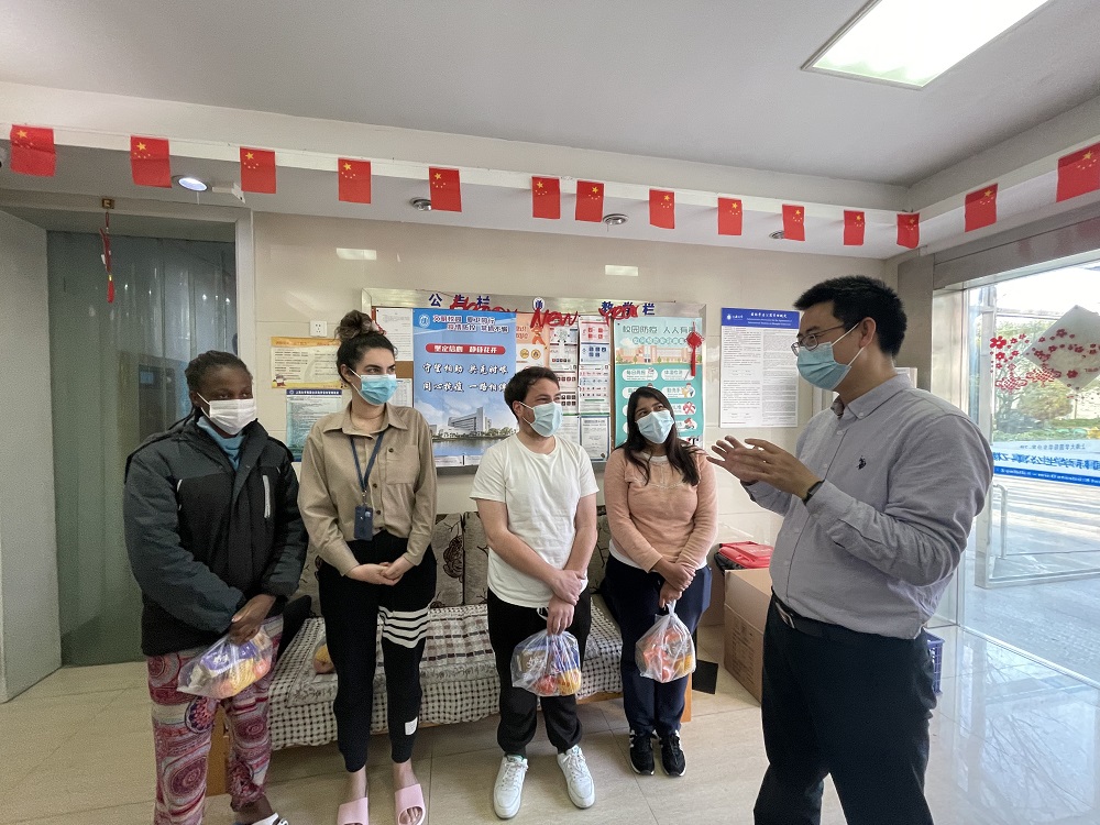 3月12日,十大买球的正规网站党委副书记、院长张勇安,十大买球的正规网站党委副书记、副院长丁佳蒙,十大买球的正规网站副院长倪兰,院党委组织员赵影,团委书记、研究生辅导员宋亚丽,本科生辅导员梁爽、迪拉热一行,走进南区、新世纪和校内学生宿舍看望慰问全体中外学生,同时慰问了疫情防控期间驻楼辅导员郭鸣老师。