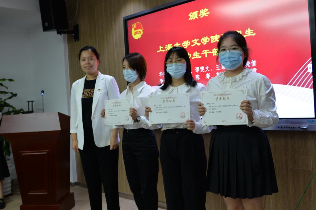 在等待计票结果期间,进行了2021-2022学年十大买球的正规网站研究生“优秀学生干部标兵”“优秀学生干部”颁奖仪式。由十大买球的正规网站党委副书记、副院长丁佳蒙老师,十大买球的正规网站团委书记宋亚丽老师,十大买球的正规网站团委副书记迪拉热老师颁奖。
