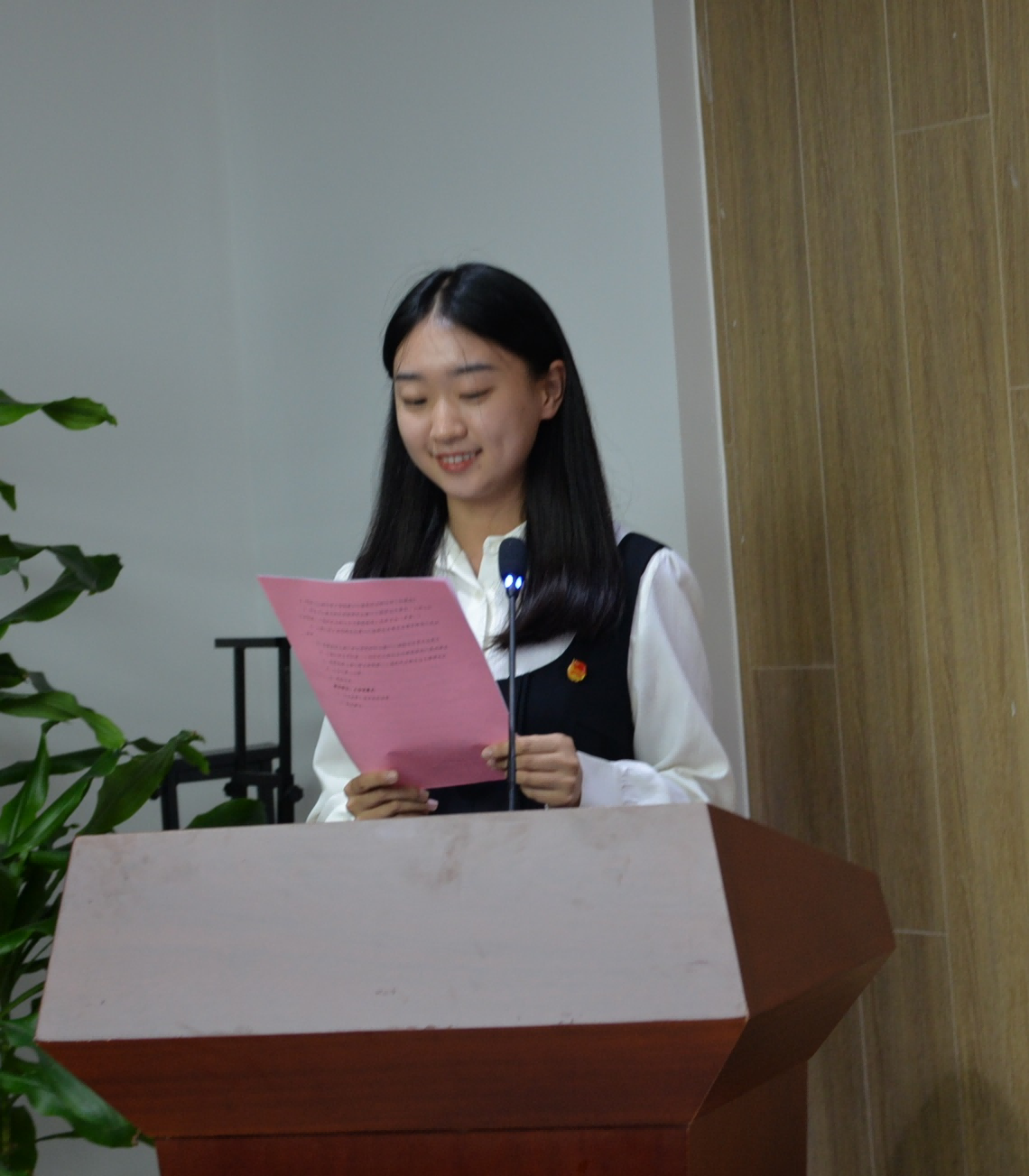 接着,十大买球的正规网站党委副书记、副院长丁佳蒙老师致开幕词。丁老师首先指出,本次大会在十大买球的正规网站百年校庆这一重要历史节点召开,是广大同学参与学院管理、共谋学院发展的一次盛会,对研究生团员各项工作的顺利开展有重要意义。随后,她总结了过去一年团学工作的成果,高度赞扬了学生骨干们做出的优异成绩以及脚踏实地为同学们服务的奉献精神。丁老师也指出,这次大会具有三个方面的意义和作用。第一,要团结群众,最大程度地代表群众利益。第二,要进一步发挥双代会桥梁和纽带作用,真正传达同学们的愿望与诉求。第三要提高双代会的工作实效,实现双代会既定目标,维护学生的各项权利。最后,丁老师希望各位代表能秉持认真负责的精神,为研究生团总支和联合会的改革发展出谋划策,召开一个展现团结民主、求真务实、开拓创新精神的大会。