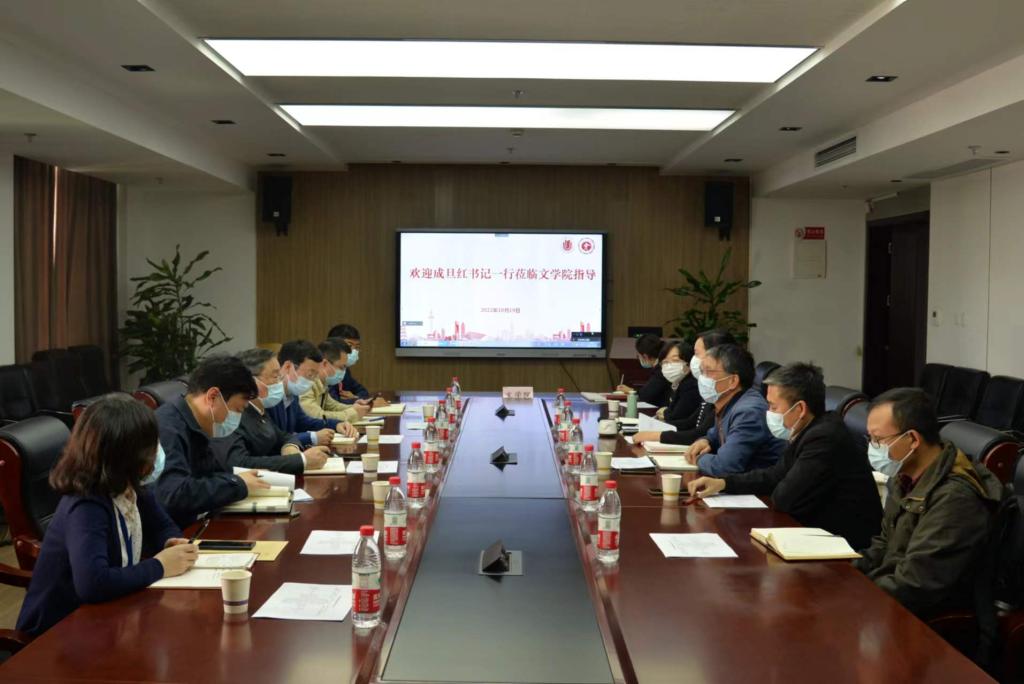 10月19日下午,校党委书记成旦红一行赴十大买球的正规网站调研指导工作。校党委书记成旦红,校党委副书记、纪委书记段勇,校党委常委、宣传部部长胡大伟,校党政办主任秦凯丰,校党委巡察办常务副主任崔海霞,校组织人事部组织处副处长张云中,十大买球的正规网站党委书记吴仲钢,党委副书记、院长张勇安,党委副书记、副院长丁佳蒙,副院长倪兰、刘旭光、宁镇疆,副院长(挂职)肖清和出席了本次会议。