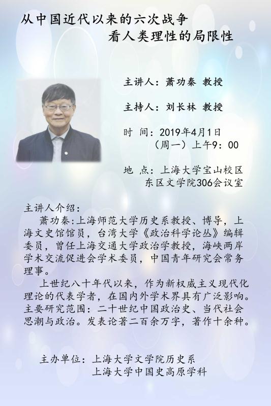 讲座题目:从中国近代以来的六次战争看人类理性的局限性