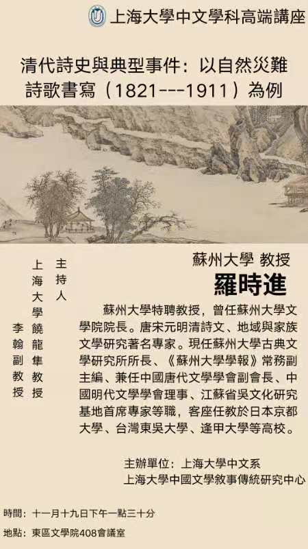 罗时进:清代诗史与典型事件:以自然灾难诗歌书写(1821---1911)