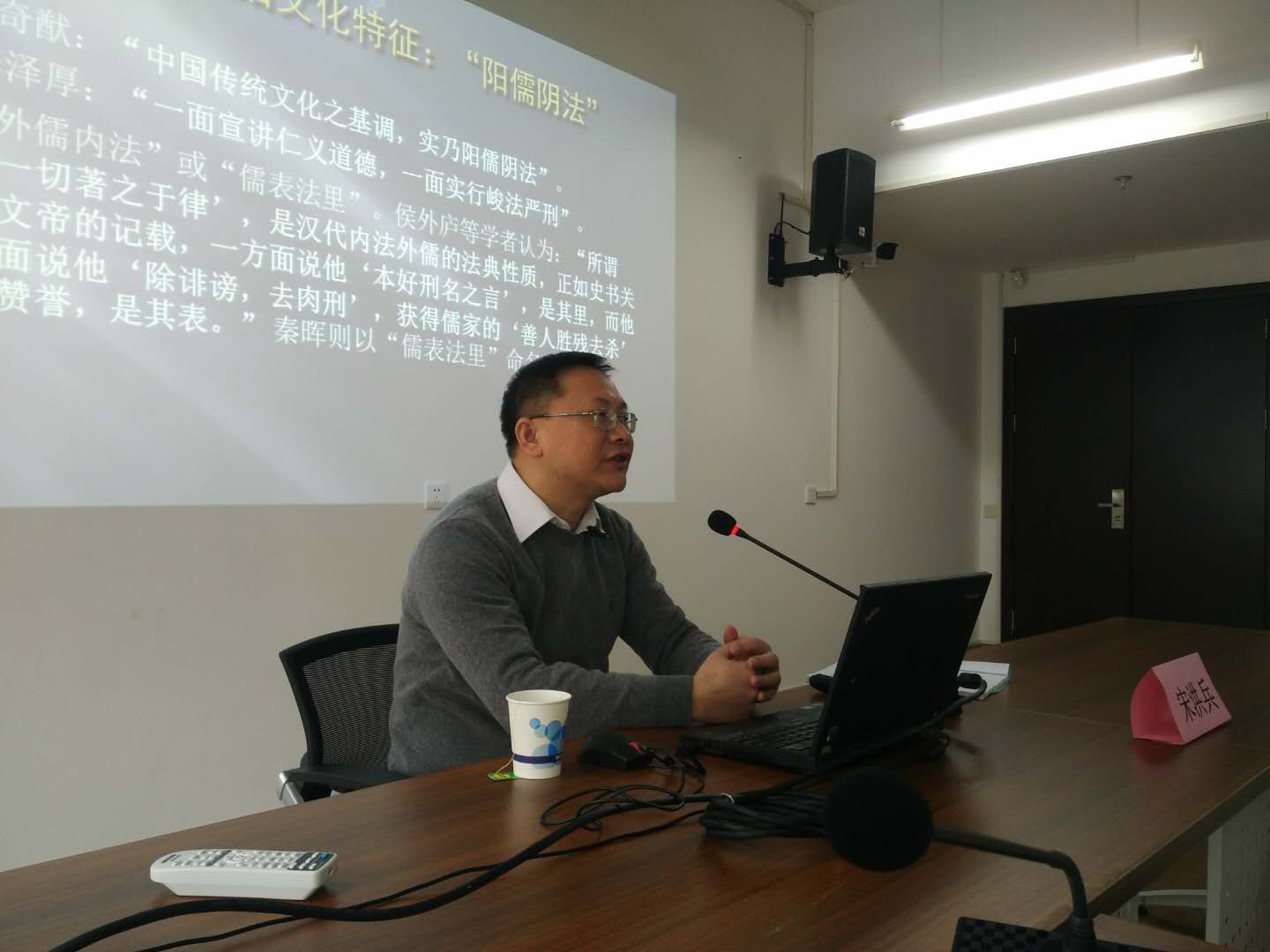 2018年12月28日上午,中国人民大学国学院副教授、中国古代法家思想研究专家宋洪兵老师来到十大买球的正规网站406会议室,就“阳儒阴法”这一中国古代思想史特定概念的形成、实质与评价,展开了一场精彩的学术讲座。本次讲座由十大买球的正规网站历史系与十大买球的正规网站中国史高原学科共同主办。十大买球的正规网站历史系郭红副教授主持讲座,十大买球的正规网站院长张勇安教授、十大买球的正规网站历史系主任宁镇疆教授、历史系青年教师把梦阳博士、常红星博士后以及历史系多位研究生、本科生同学参加讲座并参与讨论与提问。