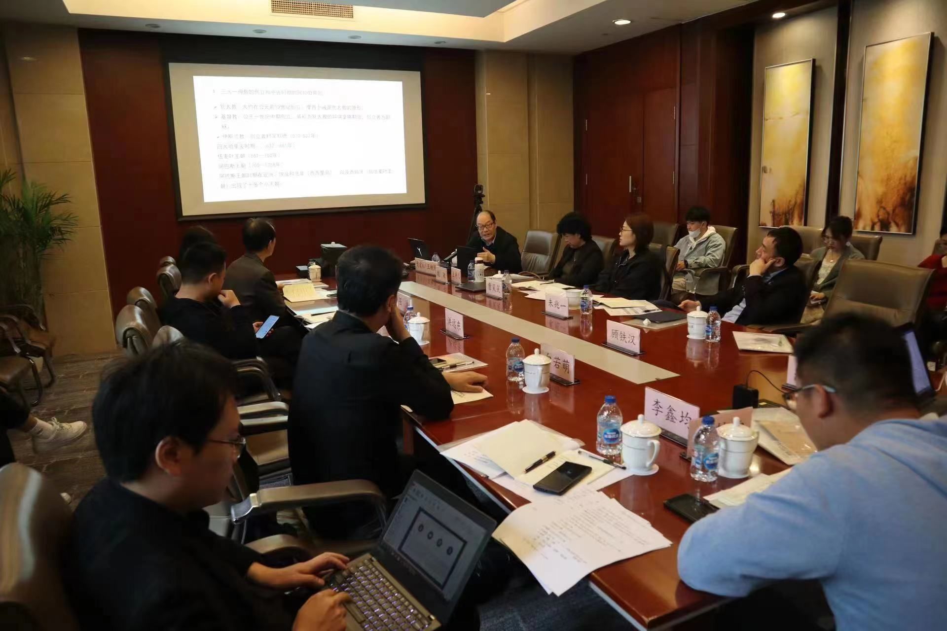 主题报告和讨论环节由魏敏教授主持。西北大学中东研究所教授、原所长王铁铮作了题为“中东通史著作撰写:问题与建议”的主题报告。在报告中,王铁铮教授阐明了世界通史研究的历史分期、历史的横向和纵向发展、农耕社会的基本特点和主要交往方式,尤其15至16世纪历史发展为世界历史的重大转折时期的有关问题,梳理了中东历史演进的主要脉络,并就中东通史撰写提出了若干指导性的建议。王铁铮教授认为,学术研究的理论指导是强化课题科学性的前提;理性、客观、批判性地挖掘史料,分析经济发展特征和趋势,在比较研究中判断中东各国现代化模式和进程,是中东经济通史研究的基本要求。王铁铮教授指出,在撰写中东经济通史的过程中,应注意地区与国别、共性与个性、主次事件关系的处理,对项目的整体架构和布局应进行不断的调整。总之,王铁铮教授的报告十分切中项目课题,非常具有启发性和指导性。