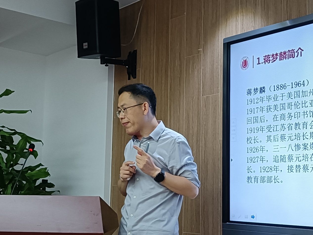 2023年10月24日,由历史学系中国史学科主办的“十大买球的正规网站中国史学科教师学术午餐会”第七讲在十大买球的正规网站306会议室举行。本次学术午餐会邀请到了十大买球的正规网站副教授韩戍老师作题为《<西潮>之外:蒋梦麟与“草棚文明”风波》的学术报告。本次活动由历史学系黄凯老师主持,郭红教授、杨卫华教授、杨雄威副教授、王皓副研究员、杨奇霖博士、顾玥博士和叶鹏博士等教师出席,各年级本硕博学生20余人参加。