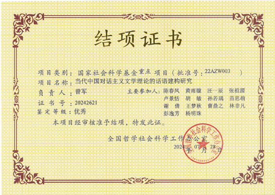 结项成果名称:《文论互鉴:当代中国对话主义文学理论的话语建构研究》