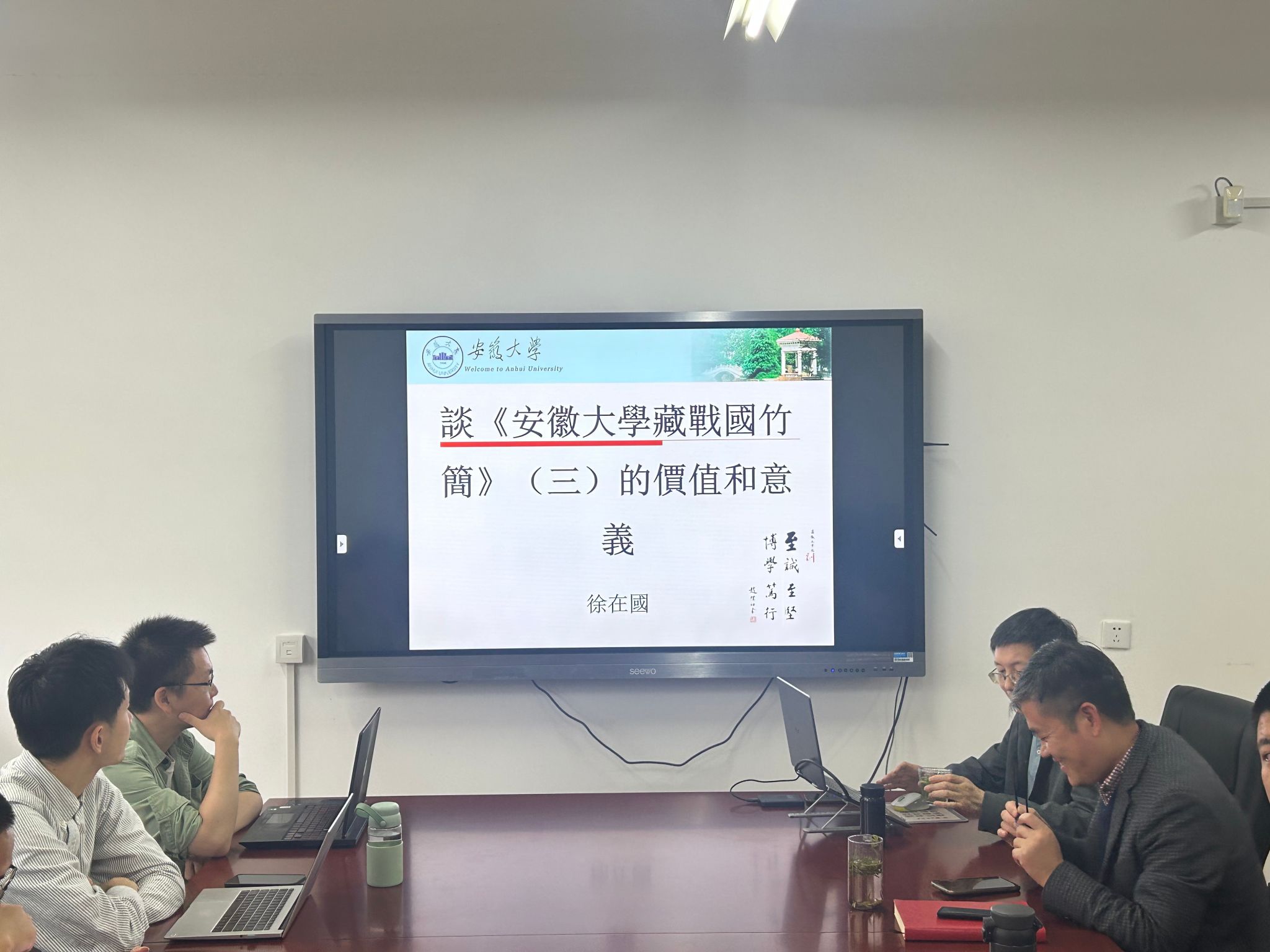2025年10月30日上午,安徽大学汉字发展与应用研究中心主任徐在国先生应邀来十大买球官网作题为《谈〈安徽大学藏战国竹简(三)〉的价值与意义》的讲座。讲座由宁镇疆教授主持,十大买球官网丁治民、郑妞等老师共同参与研讨,同时还有20余位本院学生与会学习。