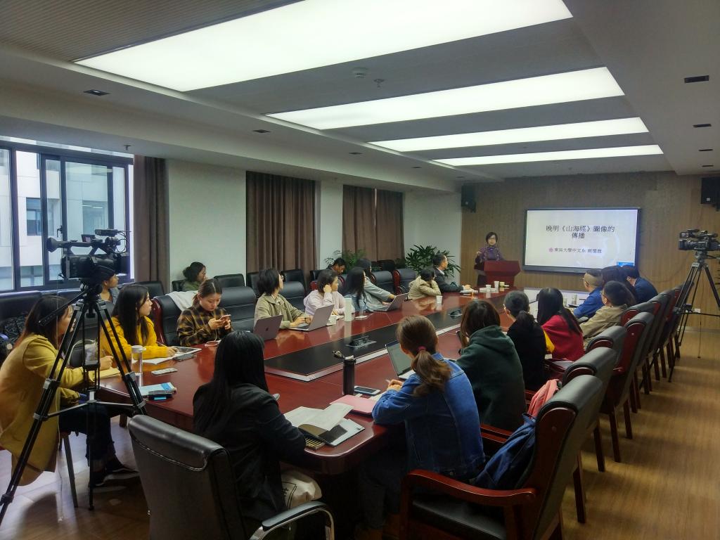 11月8日上午,台湾东吴大学文学系鹿忆鹿教授应邀来十大买球的正规网站举行“晚明《山海经》图像的传播”的学术讲座。讲座由中文系黄景春教授主持,十大买球的正规网站杨绪容、梁奇、石圆圆、宋鸽,博士后陈冠豪,国际文化学院常峻,图书馆夏明宇等老师,上海财经大学柳岳梅教授,以及来自十大买球的正规网站、社会学院、电影学院的研究生共30余人参加了讲座。