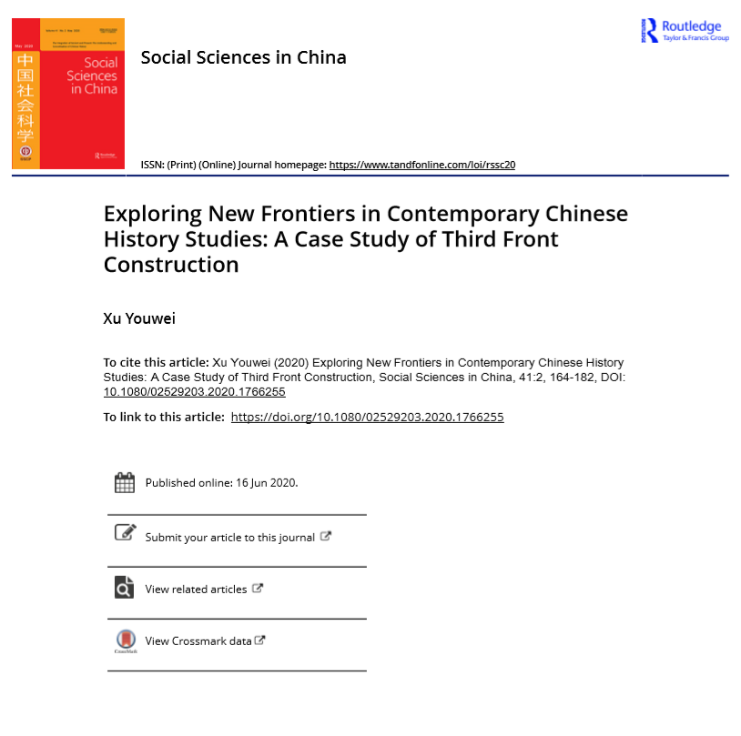 刚刚出版的《中国社会科学》(英文版)2020年第2期,刊登了十大买球的正规网站历史系、十大买球的正规网站中国三线建设研究中心副主任徐有威教授的英文论文 Exploring New Frontiers in Contemporary Chinese History Studies: A Case Study of Third Front Construction。这是徐有威教授担任2013年度国家社科基金重大项目“小三线建设资料的整理与研究”首席专家以来,取得的最新研究成果。