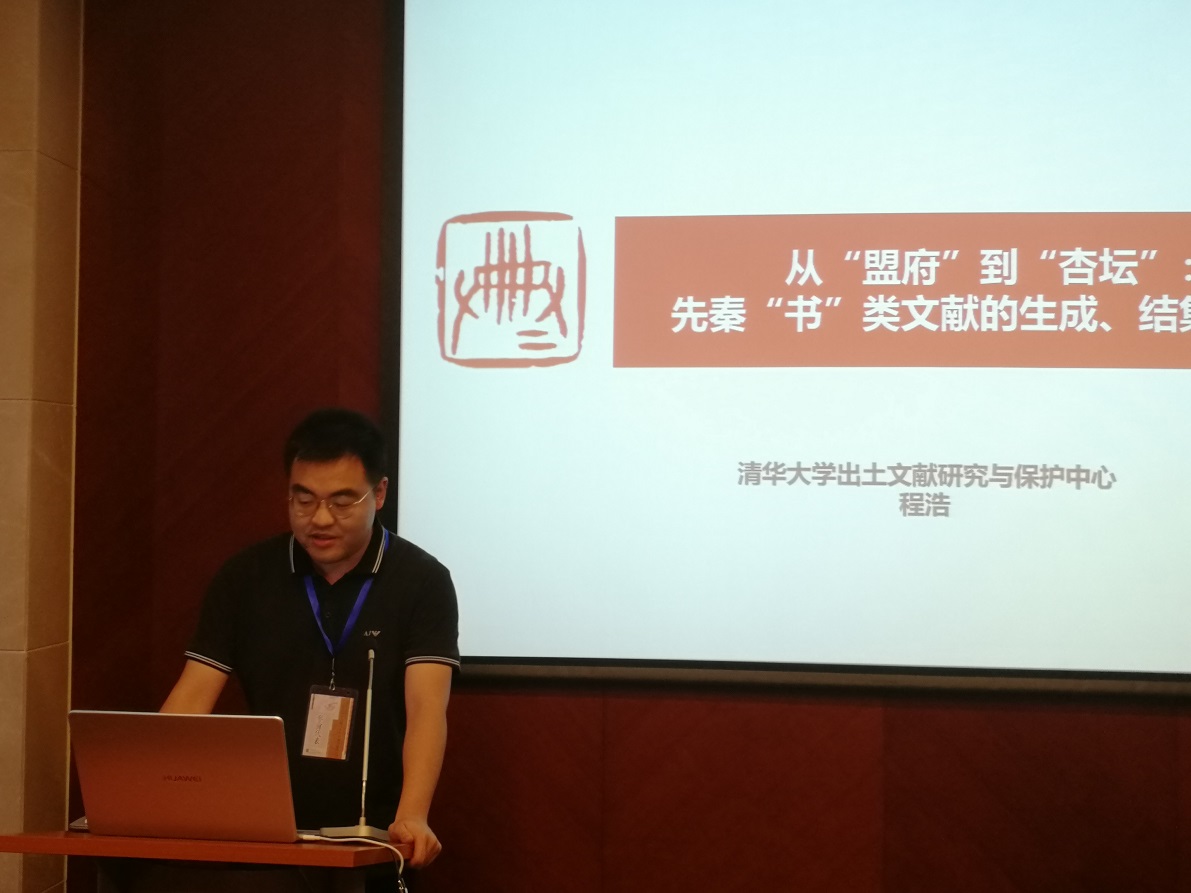 第二位宣读的是清华大学出土文献研究与保护中心程浩副教授,他在《从“盟府”到“杏坛”:先秦“书”类文献的生成、结集与流变》中认为“书”类文献脱胎于君臣行政过程中史官对其言论的载笔。这些藏之“盟府”的官方档案历经剪裁、润色,逐渐独立成单篇。随着周室式微,王官失守,“书”类文献的收藏与传习也逐渐下移。出于“观兴废”与教化子弟等目的,诸侯国以及各家派纷纷对“书”类文献进行搜集与选编。由于地域性以及其他偶然因素的影响,这些以类相存的选编本往往有着较多的差异。传世本《尚书》虽然未必为孔子亲自编次,但从孟、荀等孔门后学引“书”的情况来看,应与儒家有密切关系。楚地的清华简“书”类文献选编本,则受到墨家学派的影响。后世由于自然演变与主观改动等原因,“书”的文本又发生了一定程度的变异。