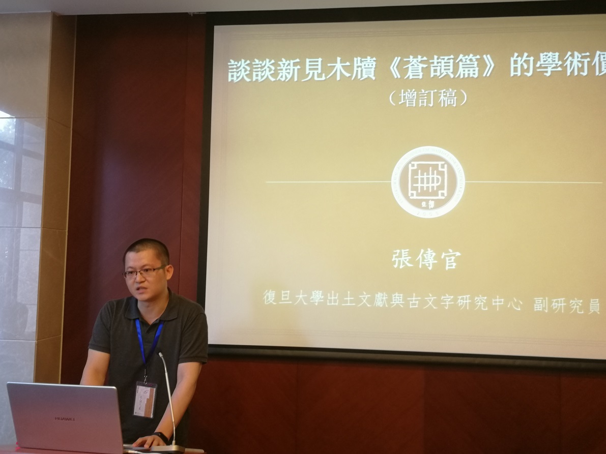 第三位宣读的是复旦大学出土文献与古文字研究中心张传官副研究员,他在《谈谈新见木牍《苍颉篇》的学术价值》一文中,认为新见木牍《苍颉篇》很难仅据以往的《苍颉篇》文句连缀而成。在此基础上,张传官副研究员将木牍本《苍颉篇》的年代大致定在西汉中晚期至东汉前期,从字体风格来看似以东汉前期更为可能。考虑到木牍的避讳、字体、《苍颉篇》的流行时代等多种因素,木牍本《苍颉篇》应该是后人以古书而不是课本或习字的形式抄写《苍颉篇》,或是一份私人抄本。