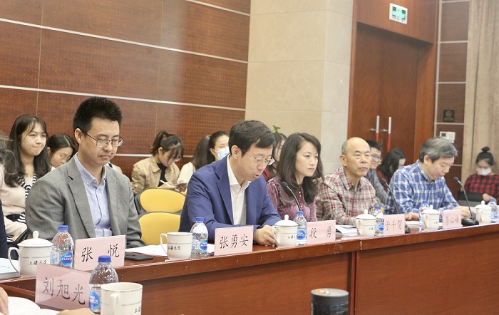 在李心峰老师的主持下,评议组徐放鸣教授、王廷信教授、王德胜教授、朱志荣教授、林少雄教授、周计武教授分别就课题的立题、命义,结构,核心问题,展开策略以及可能要面对的问题,分别给出了极具参考价值的建议,指明了课题展开的思路,也对课题设计的不完善之处进行了指正,并给出了合理建议。