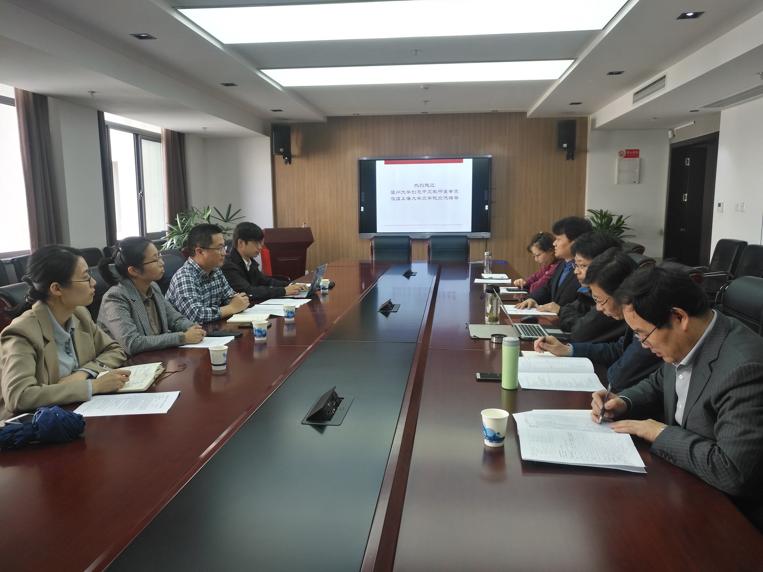 11月6日,温州大学创意中文学科在易永宜教授的带领下,一行4人莅临十大买球官网,就十大买球官网与创意写作学科交流,并学习办学经验。会议由中文系副主任许道军主持,中文系支部书记谭旭东教授首先介绍了十大买球的正规网站中文系的情况并向易教授一行表示欢迎。吕永林老师就十大买球的正规网站创意写作本科教学的课程建设、师资力量配比、夏令营等特色课程进行了说明。许道军老师就创意写作学科研究生教育的招生、培养与就业等做了介绍。张永禄教授则就温州大学创意中文本科专业的专业设置、就业前景、人才培养模式等与温州大学创意中文负责人易永宜进行了深入交流。会上,温州大学创意中文负责人易永宜教授介绍了该校创意写作人才培养的相关情况,教学负责人郭垚博士就师资资源共享与合作、学生联合培养、课程建设资源共享等与创意写作学科老师进行交流,并达成初步框架协议。参加这次经研究交流会的还有汪雨萌博士、谢尚发博士。(谢尚发供稿)