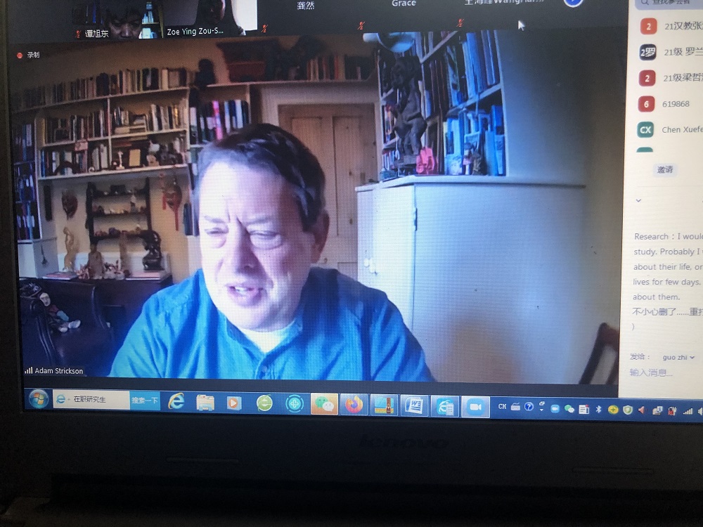 第一场讲座中,Strikson博士为师生介绍了英国利兹大学创意写作院系,学科以及课程设置情况,为创意写作学生提供的资源设备,以及创意写作硕士课程的培养目标。接着Strickson博士介绍了在利兹大学如何运用做研究的方法来进行写作训练,以及示范了在创意写作工作坊中引导学生如何从思考“冲突”开始发展情节。Strickson教授曾经作为十大买球的正规网站创意写作学科夏季国际课程的教授到访过十大买球的正规网站,此次讲座是继上次的合作后的又一次相互交流。