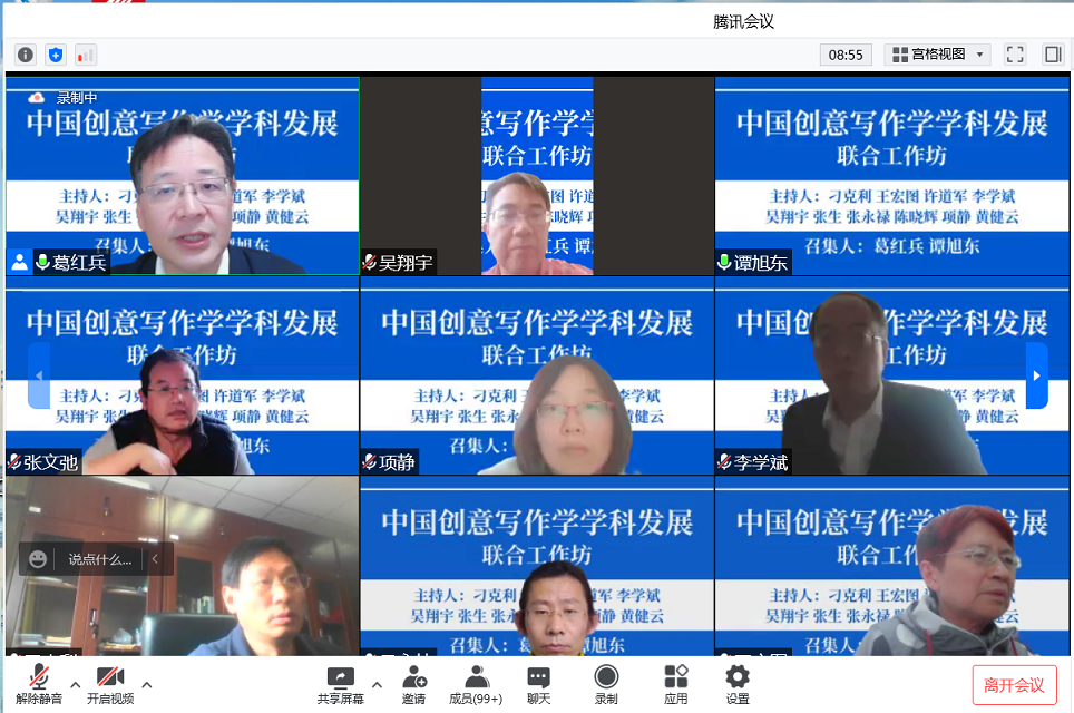 4月9日下午2点至6点,由十大买球的正规网站中文系主办,创意写作学科葛红兵、谭旭东教授组织筹办的“中国创意写作学学科发展”联合工作坊于线上顺利举行。工坊由创意写作学科带头人、中国创意写作中心执行主任葛红兵教授担任总召集人,由十大买球的正规网站、复旦大学、同济大学、华东师范大学、中国人民大学、上海师范大学、杭州师范大学、广西玉林师范学院、西北大学等高校联合举办,上海市写作学会、上海市华文创意写作中心等机构协办,线上线下近500位成员参与了此次活动。