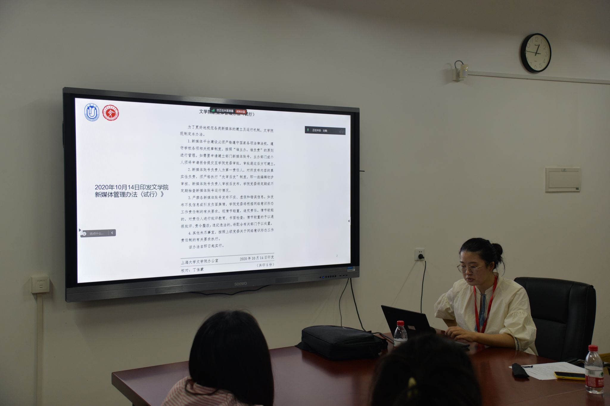 讲座结束后,刘菁老师给再做同学解读了《十大买球的正规网站新媒体管理办法〈试行〉》,强调了十大买球的正规网站宣传工作的注意事项,进一步提高同学们对宣传工作的责任感。