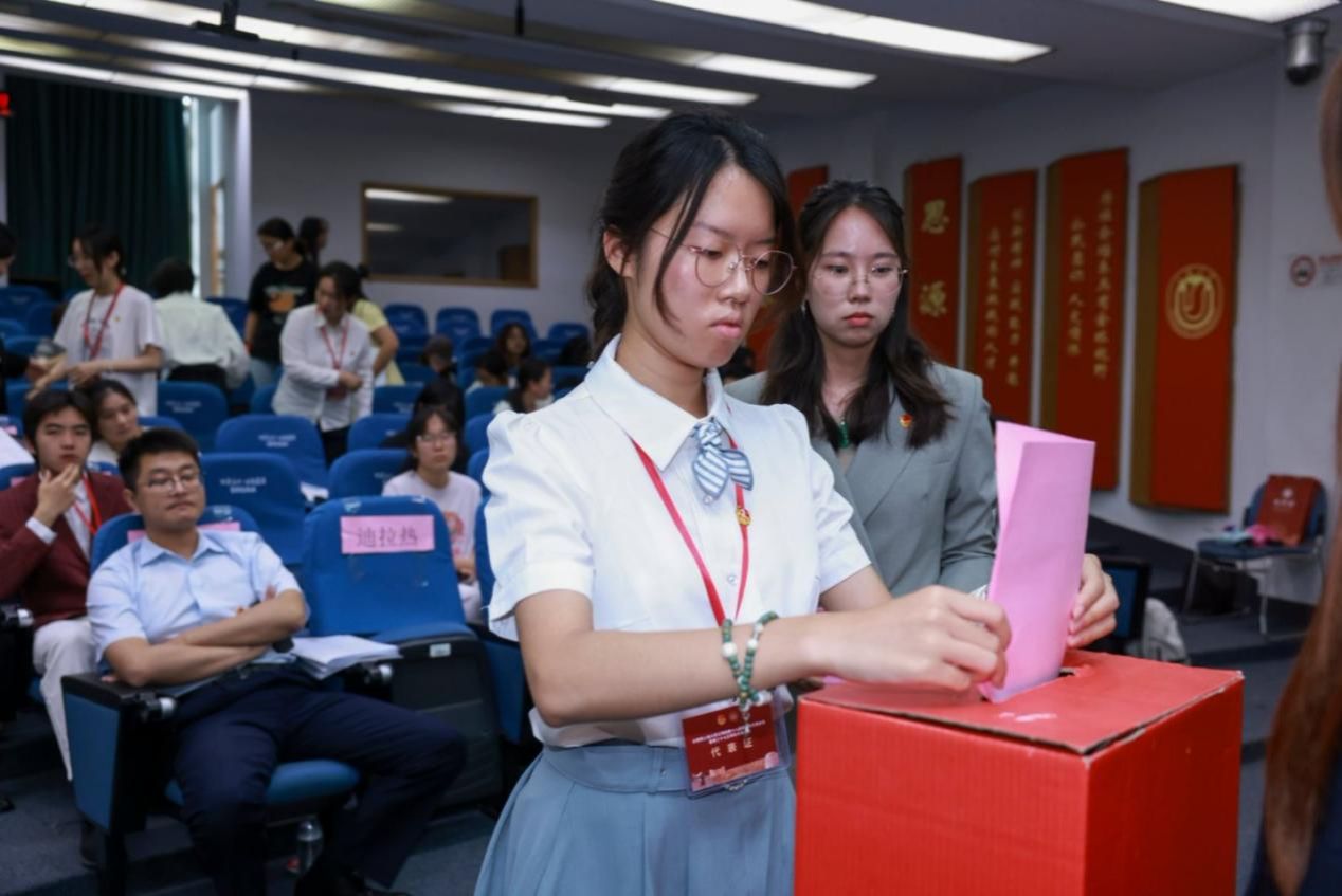 6月22日下午,十大买球的正规网站第三十七次学生代表会议在J102圆满召开。十大买球的正规网站团委副书记、本科生辅导员迪拉热,本科生辅导员张旭、丁小苜,十大买球的正规网站学生会主席团成员姜昀岚,外国语学院学生会主席赫薄然出席了本次会议,23级本科生王欣颖主持本次会议。