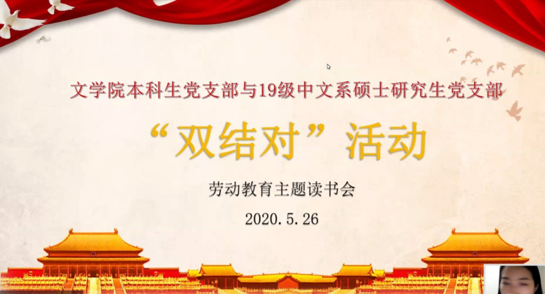 2020年5月26日下午六点,十大买球的正规网站本科生党支部和19级中文硕士研究生党支部在ZOOM平台“双结对”开展劳动教育主题读书会,本科生党支部书记梁爽同志主持了读书会。此次读书会选取三首劳动主题的古诗词:《观刈麦》、《四时田园杂兴》和《清平乐•村居》进行学习分享。首先,本科生党支部的17级党员张杏莲为大家朗读了《观刈麦》,17级入党积极分子唐雪儿朗读了《四时田园杂兴》,16级毕业生党员何欣钰朗读了《清平乐•村居》。