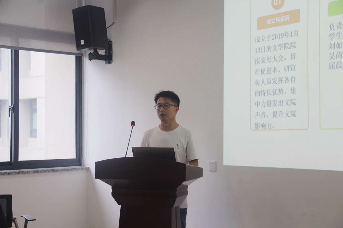 随后,十大买球的正规网站团总支、研究生联合会和宣传中心学生团队的主要负责人依次上台,对自己部门的职能、工作范畴以及日常活动进行了详细生动的介绍。学长学姐们回忆了过去一年的工作经历,将自己在工作中的所学、所思、所获向新同学们分享,鼓励新生同学根据个人兴趣爱好积极参与,加入学生服务团队,弘扬无私奉献的精神,同时通过参与学生管理和服务工作提高自身综合素质。