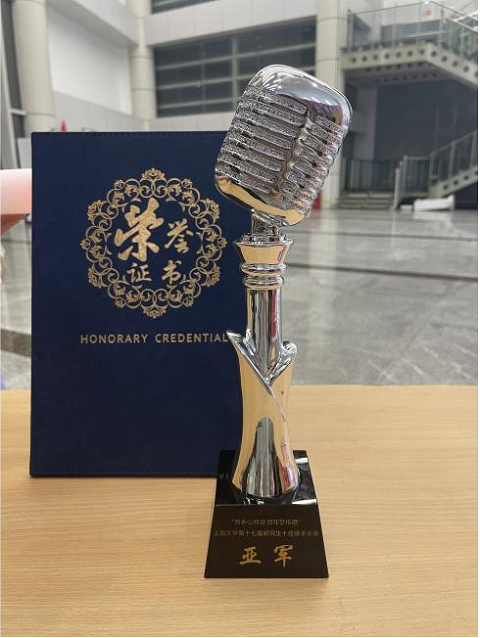 在第一轮组队赛中,郭捷和管理学院2020级硕士研究生闫建敏强强联手演绎了青春励志歌曲《最美的太阳》,点燃现场气氛。第二轮个人赛中郭捷一首《生生》将他的演唱功底发挥地淋漓尽致,两轮比赛过后郭捷暂列第三名,在文院师生的加油助威下,郭捷顶住压力在第三轮冠军争夺赛中反超第二名,获得亚军殊荣!