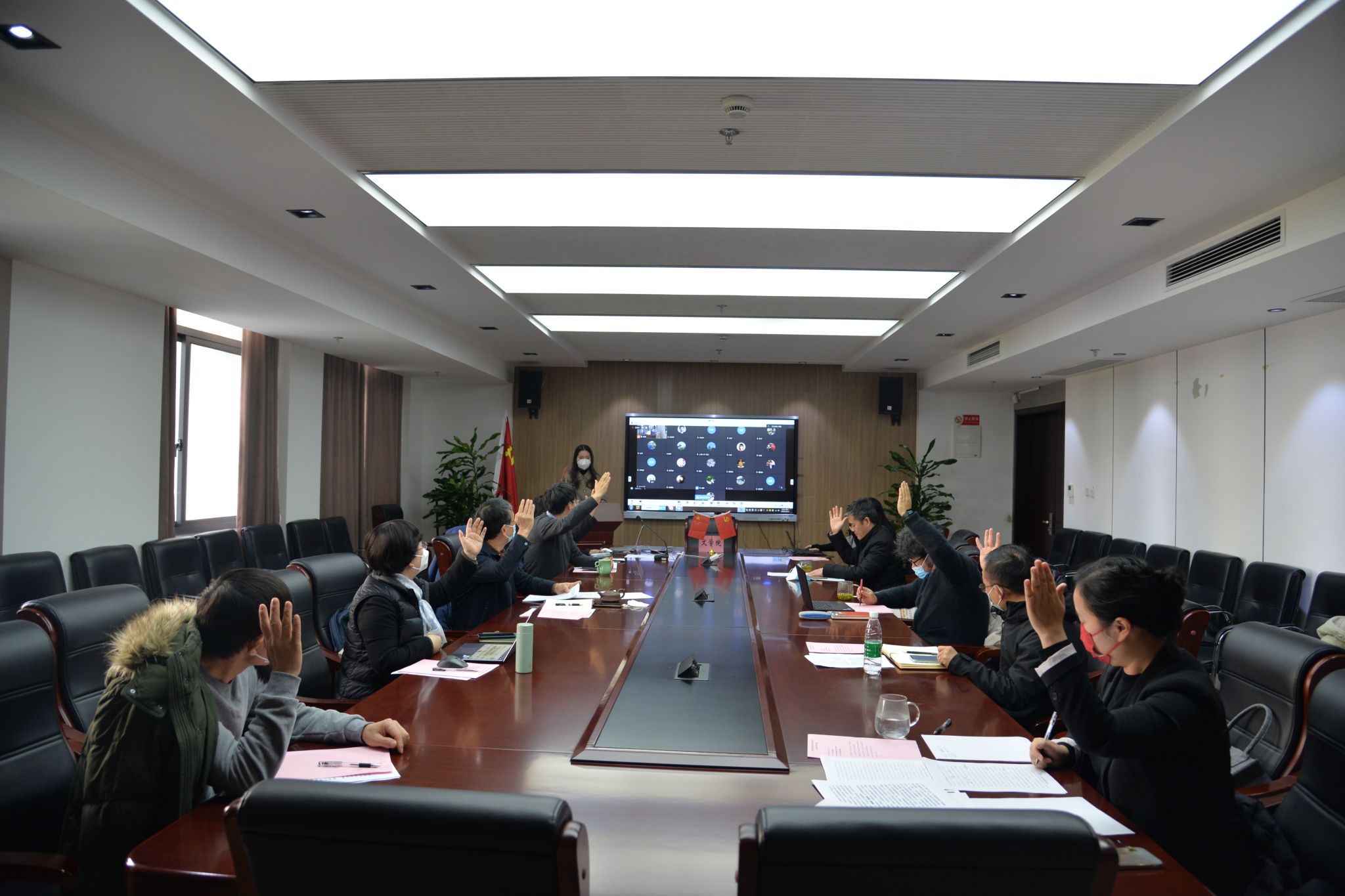 2022年12月13日下午,十大买球的正规网站五届六次“双代会”在学院306会议室举行,十大买球的正规网站教代会代表、工会会员代表等近30人参加了会议。由于疫情防控工作要求,本次会议以线上线下相结合的方式开展,校工会常务副主席、妇委会常务副主任顾莹应邀线上参加会议。大会由十大买球的正规网站分工会副主席梁爽主持。