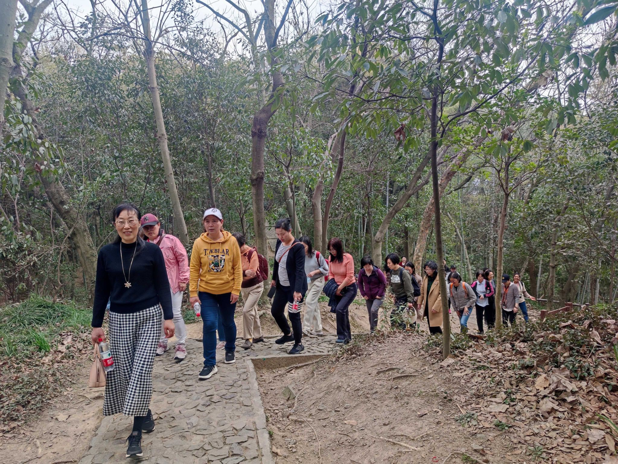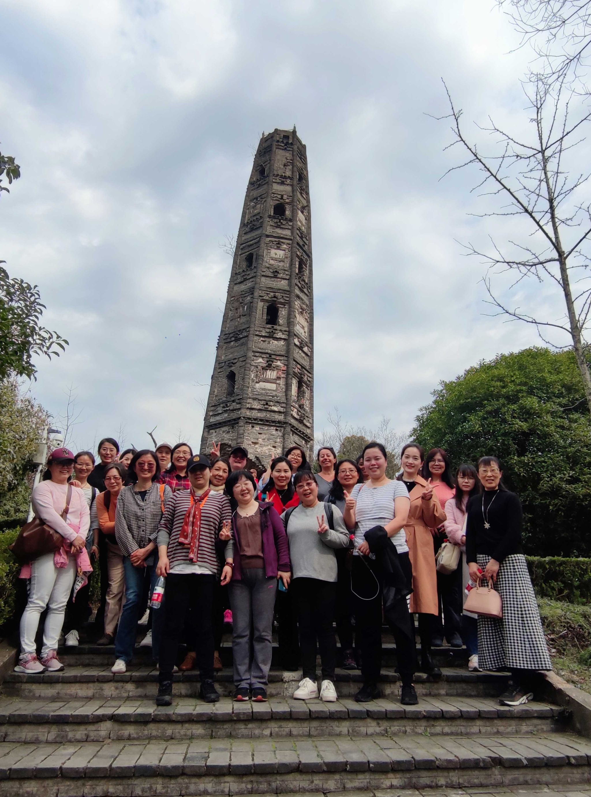 当天中午,女教职工们乘坐大巴车从上大东区出发,一路欢歌笑语地来到了位于松江区的天马山。天马山别名干山,人文历史悠久,主峰海拔98.2余米,山势巍峨险峻陡峭,境内森林繁茂,为上海陆上海拔最高地点,也是佘山九峰十二山中山林面积最大、海拔最高的一座山。女教职工们迎着春日里和煦的微风,一路拾级而上,先后参观了看剑亭、留云阁、二陆草堂及被誉为“天下第一斜塔”的护珠塔等多处景观。