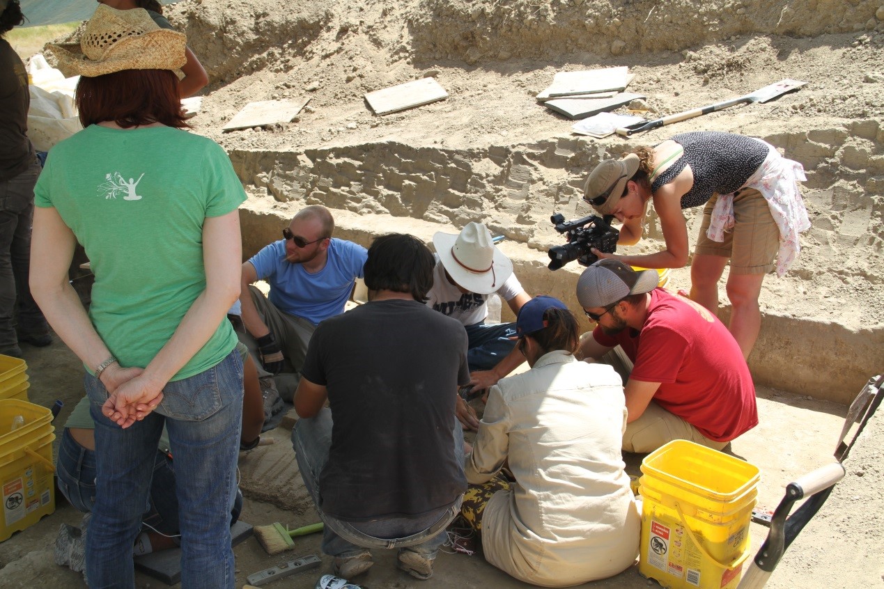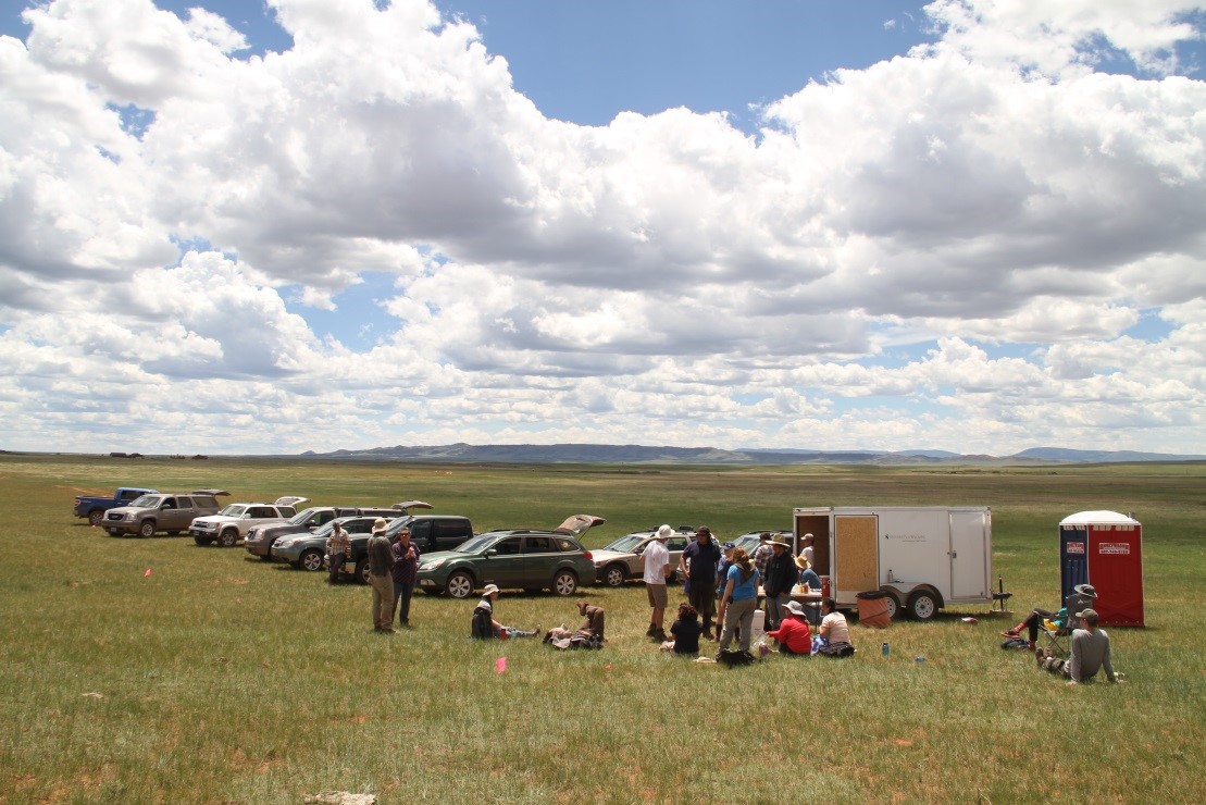 到美国一周后,我正式参与了考古发掘工作。第一天我们在人类学大楼150室集合,我们填了几样材料,领了一件服装,每人被发到一把手铲。我们团队有20人,来自美国各州的本科生。之后也有各地来的志愿者和硕士博士参与工作。我们的带队教授是Todd,怀俄明大学人类学系主任;两位助教,幽默的Alex和文静的Sarah。