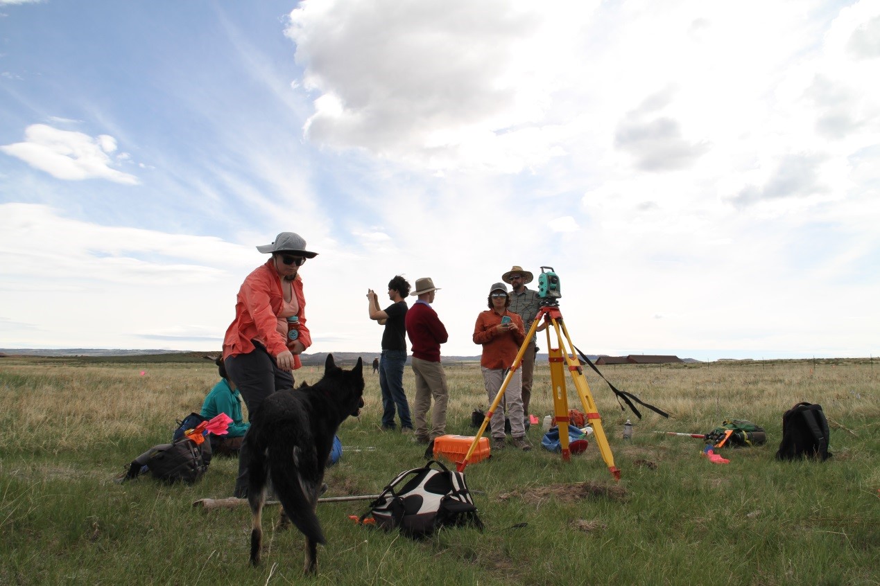 我们的工作主要是田野调查和考古发掘。考古发掘主要在Harold Bergman site进行。这里风景极美,临近一个湖,但草也极多,探索极不方便。所幸怀俄明地区气候寒冷干燥,虽是野外,几乎没有蛇虫鼠蚁,只有些许小虫。对于考古调查是一件幸事。此外,我们也学会用手持GPS,全站仪和金属探测器。我们也学习了全站仪关于定位校准等知识。
