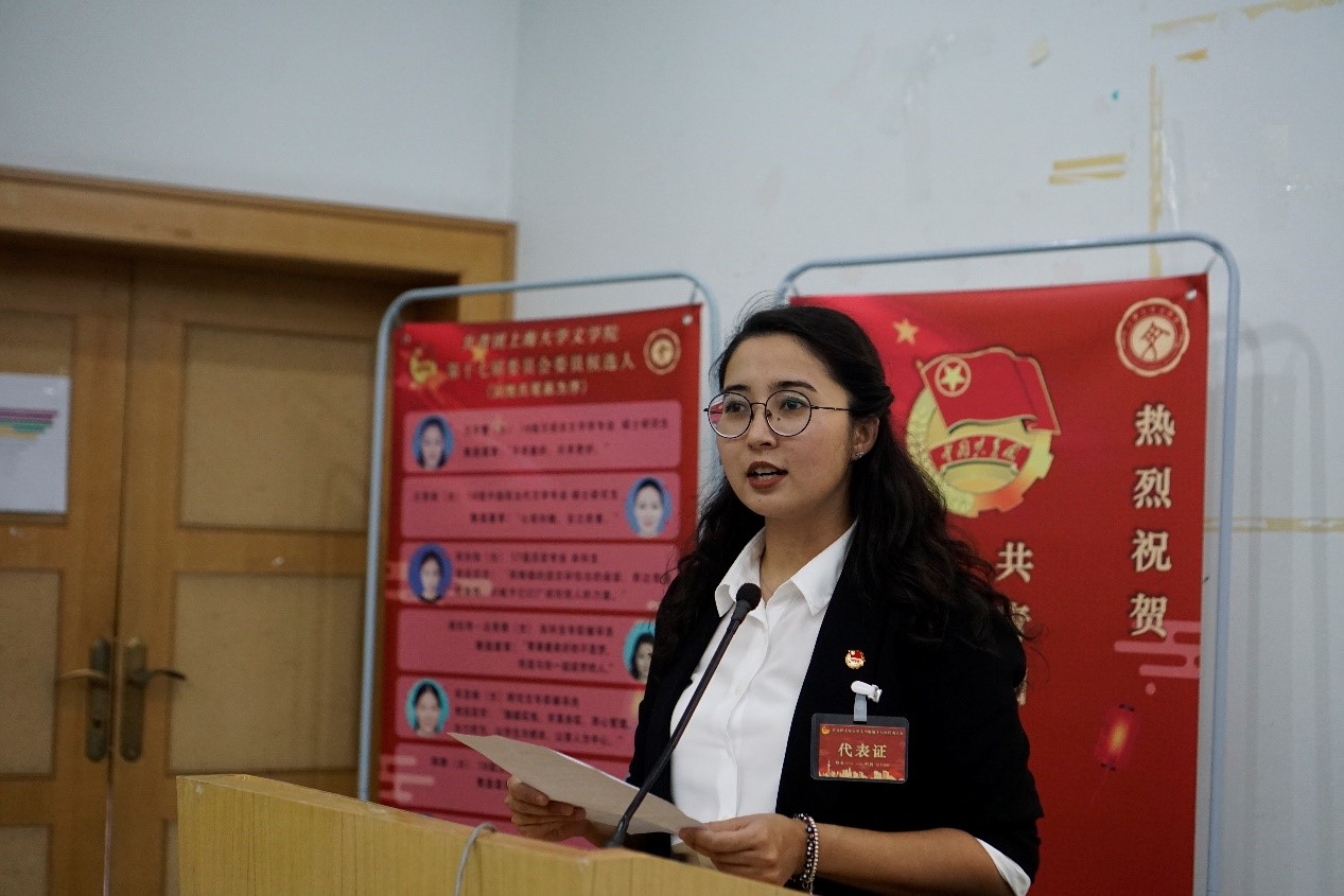 在全体表决通过《共青团十大买球的正规网站第十七届委员会选举办法》后,十一位团委委员候选人18级汉语言文字学在读硕士王丹蕾、18级中国现当代文学专业在读硕士王思凌、17级历史专业本科生司光怡、本科生辅导员迪拉热·达吾提、研究生辅导员宋亚丽、18级中国现当代文学在读硕士陈默、18级中国史在读硕士周曼琳、十大买球的正规网站团委书记赵影、本科生辅导员唐传星、17级汉语国际教育本科生秦子凡、17级历史专业本科生穆友江山依次发表演讲。大会本着公平公开的原则,采取无记名投票方式选举产生了新一届九位团委委员。