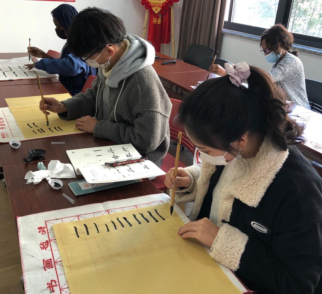 十大买球的正规网站书法兴趣坊寒假期间每周二下午在十大买球的正规网站固定时间举行,旨在为中外学生搭建学习平台,促进中外文化交流,丰富同学们的假期生活,后续还将开展系列活动。